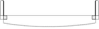 Two-man crosscut is intended for sawing through large logs, and various pattern teeth are used. Each tooth pattern is claimed to have its own particular advantages, however this is often up to personal preference. Holes in the ends of the blade enable the handles to be fitted. Lengths can be from about 120 to 240 cm.