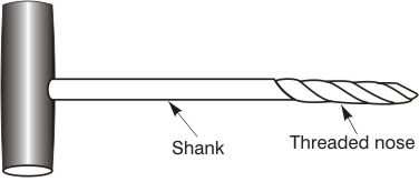 Gimlet: gimlet useful for boring small holes in places where brace and bit are inconvenient. The gimlet has a screw feed which reduces the amount of pressure required.