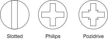 The two basic drive designs are single slot and crosshead, crossheads are normally either 'Philips' or 'Pozidrive', these require specific types of screwdriver although a Philips driver can be used on Pozidrive screws.