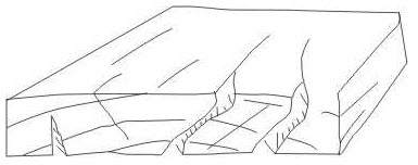 Shake: Separation of grain between the growth rings, often extending along the board's face, and sometimes below its surface.