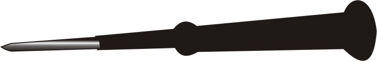 Prick punch- The prick punch is used for marking soft metal such as brass and has a long tapered cone shaped point terminating in a sharp 300 conical tip.