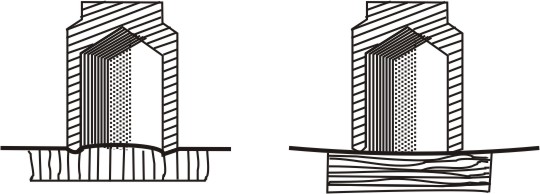 c. Thicker materials may need more than one blow. Use a thick material such as lead cake or an end grain wood block to prevent distortion.