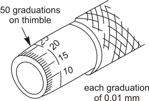 Figure 4: Circumferential scale on the thimble is graduated with 50 equal divisions each of 0.01mm