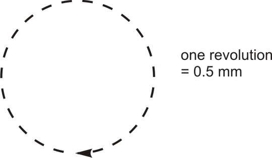 Figure 5: One revolution of thimble in metric system translates the spindle by 0.5 mm