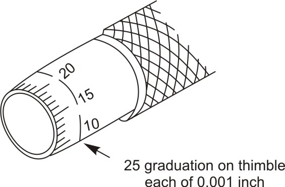 Figure 20: Circumferential scale on the thimble is graduated with 25 equal divisions each of 0.001 inch