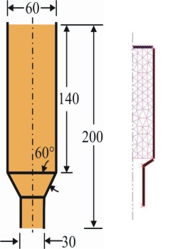 Figure 4: Schematic of die shape used for simulation of extrusion process.