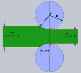 • It passes through the roll gap and leaves the exit plane yy with a reduced thickness hf and at a velocity vr.