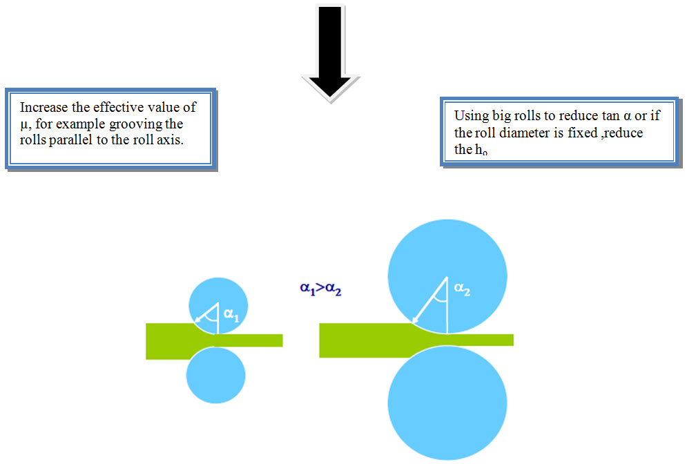 For the work piece to enter the throat of the roll. The component of the friction force must be equal to or greater than the horizontal component of the normal force.