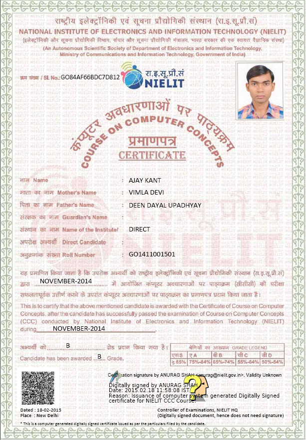5. Course on Computer Concept (CCC) from National Institute of Electronics and Information Science (NIELIT) in November 2014.