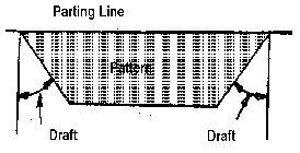Draft is taper allowed on the vertical faces of a pattern to permit its removal from the sand with out tearing the moulding walls. It may be represented in millimeters per meter on a side or degrees. The amount of taper varies with the type of patterns.